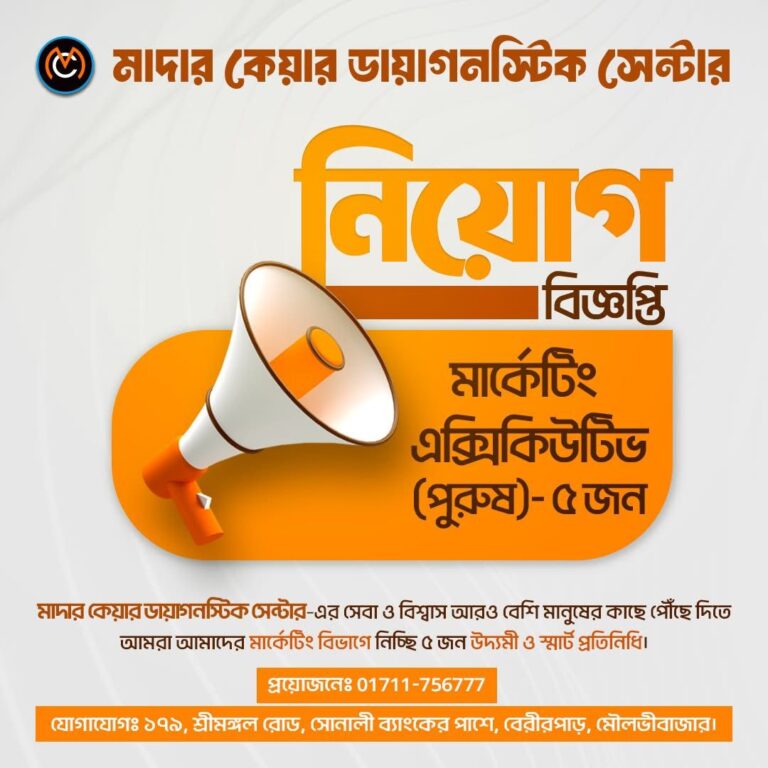 মার্কেটিং এক্সিকিউটিভ খুঁজছে মাদার কেয়ার ডায়াগনস্টিক সেন্টার!