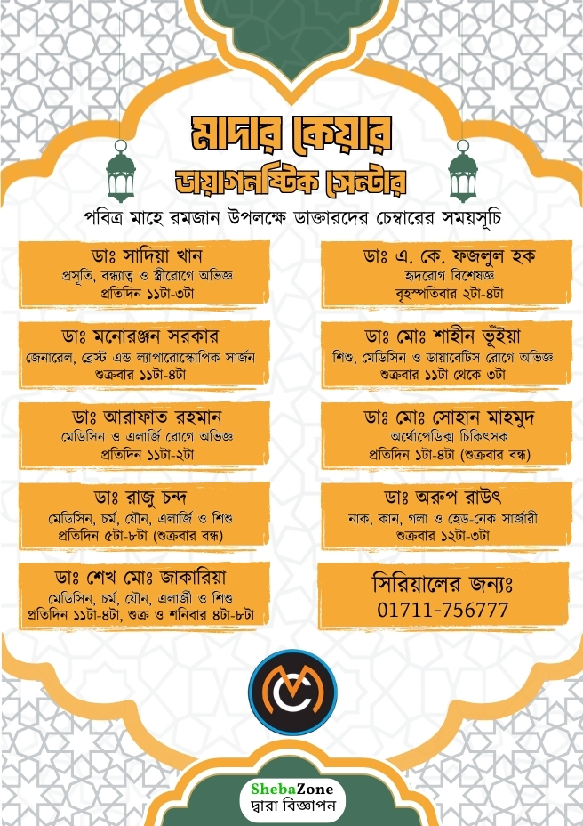 বিশেষজ্ঞ ডাক্তারদের তালিকাঃ